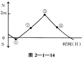 52.该小组每天量测影长时,北京时间应为( ) A.12:00 B.12:40 C.11:20 D.11:00 解题思路 这是一组典型的自然地理基本能力考核题,属中等难度。该组题立意表达如下两种信息:第一,各学科之间存在着大量通过的“基础语言”,即使在“单科试卷”中,使用到其他学科的基础语言是不可避免和正常的。每门课程都强调要学习该学科有用的知识,基础语言的通用性就是“有用”的重要表现之一。第二,使用地理图表的能力,包括将地理现实繁复杂乱的信息加以梳理选取,制成直观的地理图表并从图表的信息中“还原”为地理现实或实践的能力。该组题目主要考核学生能否将数学的基础语言和能力运用于解决简单的地理问题,对时间的换算是否熟练,以及能否真正理解地理实践和地理图表间的关系,并准确把握一组题目中各个小题的相互联系。 答案:B 53.3月21日,当该小组进行观测时,下列城市中即将迎来旭日东升的是( ) A.英国伦敦 B.匈牙利布达佩斯(约19°E) C.土耳其伊斯坦布尔(约29°E) D.夏威夷檀香山(约158°W) 解题思路 这是一组典型的自然地理基本能力考核题,属中等难度。该组题立意表达如下两种信息:第一,各学科之间存在着大量通过的“基础语言”,即使在“单科试卷”中,使用到其他学科的基础语言是不可避免和正常的。每门课程都强调要学习该学科有用的知识,基础语言的通用性就是“有用”的重要表现之一。第二,使用地理图表的能力,包括将地理现实繁复杂乱的信息加以梳理选取,制成直观的地理图表并从图表的信息中“还原”为地理现实或实践的能力。该组题目主要考核学生能否将数学的基础语言和能力运用于解决简单的地理问题,对时间的换算是否熟练,以及能否真正理解地理实践和地理图表间的关系,并准确把握一组题目中各个小题的相互联系。 答案:B 54.图2-1-14是该小组绘制的连续一年多的竿影长度变化图。图中反映3月21日竿影长度的点是( )