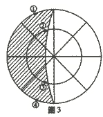146.(2004广东地理试卷)在六大板块中,图中反映出的板块有 ( ) A.3个 B.4个 C.5个 D.6个 答案:A 解析:图中反映出的版块有亚欧版块、美洲版块、太平洋版块。 147.(2004广东地理试卷)比较K、L、M、N四地洋底地壳的地质年龄 ( ) A.L>N B.L<N C.L>K D.M>N 答案:D 解析:根据海底扩张学说来判别。 2004年3月22日到4月3日期间,可以看到多年一遇的“五星连珠”天象奇观。其中水星是最难一见的行星,观察者每天只有在日落之后的1小时内可能看到它。在图3中阴影部分表示黑夜,中心点为极地。回答148-150题。