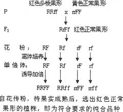 (写出F1基因型、表现型(1分);写出花粉基因型(1分);写出离体培养(1分);写出诱导加倍(1分);写出加倍后基因型(1分);写出最后的筛选方法(1分)…………………………………………………………………………(共6分)
