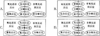 2、下列方框代表化学反应的集合,圆圈代表某种反应类型的集合,其中表示关系正确的是( )