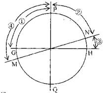 32、若PQ为地轴,一年中太阳直射点总是在图中MN所示平面上,则角②的度数是( )