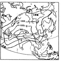 36、右图为“亚洲某日等压线分布图”,读图完成下列各题。(15分)