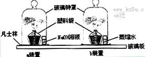 右图为探究CO2是否为植物光合作用原料的实验装置示意图。其中a为实验装置,b为对照装置。有关用塑料袋扎紧花盆的实验设计思路是