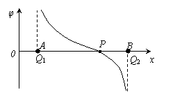x轴上有两个点电荷Q1和Q2,Q1和Q2之间连线上各点电势高低如图曲线所示(AP>PB),选无穷远处电势为零,从图中可以看出