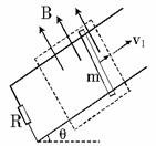 15.(15分) 如图所示,彼此平行的长直金属导轨倾斜放置,间距为L=2m、倾角为θ=370,导轨下端接有阻值为R=2Ω的电阻,质量为m=0.2kg的导体棒垂直跨接在导轨上并保持静止。导轨和导体棒的电阻均不计,且接触良好。现导轨所在的平面上有一矩形区域内存在着垂直导轨平面向上的匀强磁场,磁感应强度大小为B=0.5T。开始时,导体棒静止于磁场区域的上端,当磁场以速度v1 =5m/s匀速沿倾斜导轨向上移动时,导体棒随之开始运动后受到大小恒为f=1.2N的滑动摩擦阻力作用,当棒达到稳定速度时,导体棒仍处于磁场区域内,已知:sin370=0.6,cos370=0.8,g=10m/s2。问: