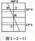 20°W和160°E经线是东、西半球分界线。图11中甲、丙在晨线上,此时地球位于远日点附近。回答56-57题。