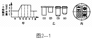 11.下面图2---1中甲图示洋葱根尖生长点连续分裂的细胞在各个时期细胞核内DNA含量的测定结果,乙图是一组目镜标有5X和16X字样、物镜标有10×和40×字样的镜头,丙图是某同学在乙图中选用的一组能放大160倍的镜头组合所观察到的图像。欲将丙图视野中处于甲图e时期的细胞移至视野中央进行640倍高倍镜观察,正确的镜头组合及操作程序应是