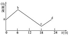 某校生物兴趣小组在玻璃温室里进行植物栽培实验。他们对室内空气中的CO2含量进行了24h测定,并根据数据绘制成下图曲线。请问图中表示光合速率等于呼吸速率的点是