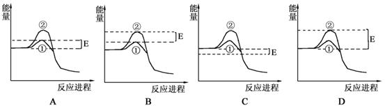 29.下图中,①表示有酶催化的反应曲线,②表示没有酶催化的反应曲线,E表示酶降低的活化能。正确的图解是