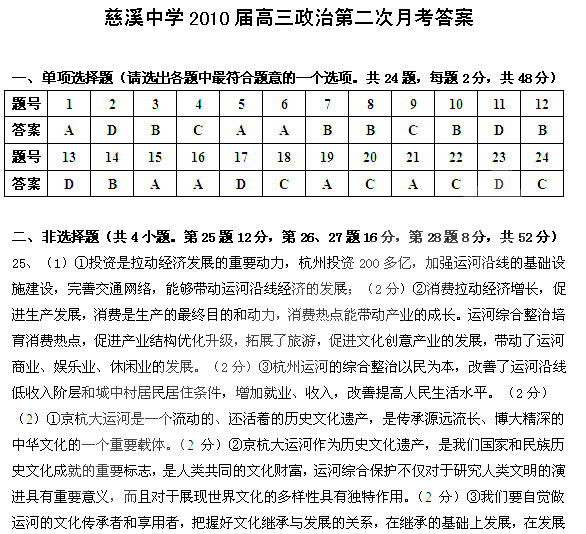 (1)结合材料二,分析杭州市实施运河综合保护的经济意义。