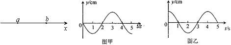 7.如图所示,一列简谐横波在x轴上传播,图甲和图乙分别为x轴上a、b两质点的振动图象,且 xab=6m。下列判断正确的是 ( )