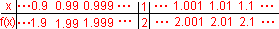 ,当x→1时函数值的变化趋势如何?函数在x=1处无定义.我们知道对实数来讲,在数轴上任何一个有限的范围内,都有无穷多个点,为此我们把x→1时函数值的变化趋势用表列出,如下图: