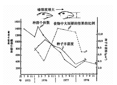 深度大的个体容易咬开大坚果,也食小坚果。科学家格兰特自1975年开始,对达夫涅