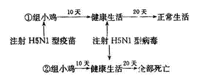 H5N1型病毒的一群健康小鸡分别为①、②两组,实验过程和结果如下图所示:( )