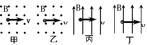 如图所示,匀强磁场的磁感应强度均为B,带电粒子的速率均为,带电荷量均为q,试求出图中带电粒子所受洛伦兹力的大小,并标出洛伦兹力的方向。