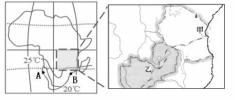 下图中甲、乙是所在国家的两个重要城市,据图中信息,回答下列25-26题。