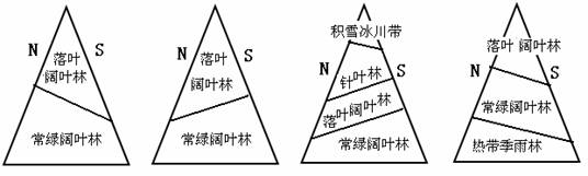 9.下列四幅图中,最可能符合甲山地植被垂直差异的是