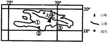 20.北半球夏至日,上图四地中正午太阳高度最小和最大的分别是