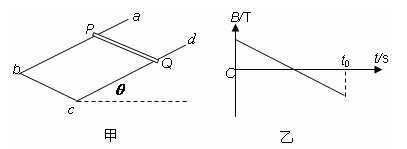 13.如图甲中abcd为导体作成的框架,其平面与水平面成θ角,质量为m的导体棒PQ与ab、cd接触良好且PQ与 bc平行,回路的电阻为R,整个装置放于垂直于框架平面的变化的磁场中,磁感应强度随时间变化的图像如图乙,PQ始终静止,在0-t0s内,PQ受到的摩擦力的变化情况可能是( )