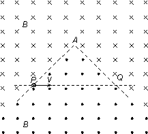 (14分)如图所示,空间某平面内有一条折线是磁场的分界线,在折线的两侧分布着方向相反、与平面垂直的匀强磁场,磁感应强度大小都为B。折线的顶角∠A=90°,P、Q是折线上的两点,