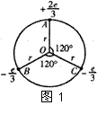 如图1所示,中子内有一个电荷量为 + e的上夸克和两个电荷量为 - e的下夸克,3个夸克都分布在半径为 r 的同一圆周上,则3个夸克在其圆心处产生的电场强度为: ( )