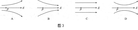 5.在如图3所示的电场中的P点放置一正电荷,使其从静止开始运动,其中加速度逐渐增大的是图中的: ( )
