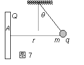 9.如图7,A为带正电荷Q的金属板,沿金属板的垂直平分线在距离板r处放一质量为m、电量为q的小球,小球受水平向右的电场力作用而偏转θ角后静止。设小球是用绝缘丝线悬挂于O点,求小球所在处的电场强度。