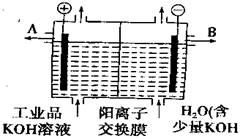 氢氧化钾是重要的工业产品,工业品氢氧化钾的溶液中含有某些含氧酸根杂质,可用离子交换膜电解提纯,电解槽内装有阳离子交换膜(只允许阳离子通过),其工业原理如下图所示:下列有关说法中错误的是(