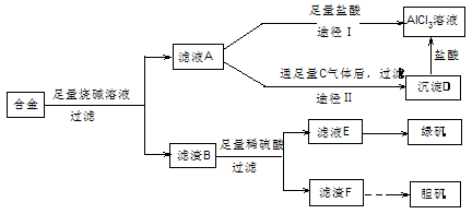 Ⅱ 某化学兴趣小组用含有铝、铁、铜的合金制取纯净的氯化铝溶液、绿矾晶体和胆矾晶体,以探索工业废料的再利用。其实验方案如下: