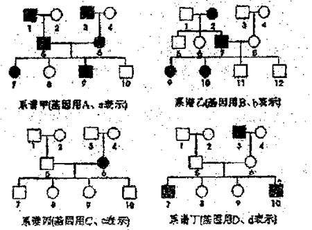 24.下图为甲、乙、丙、丁4种遗传性疾病的调查结果,根据系谱图分析、推测这4种疾病肯定是常染色体遗传病的是