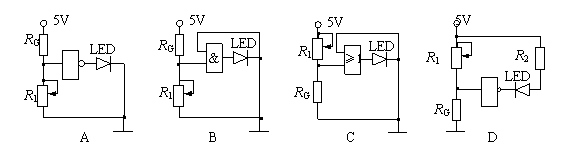 在下列模拟路灯照明电路的光控开关电路中(RG为半导体光敏电阻、LED为发光二极管),能实现天暗时LED发光、天亮时LED熄灭的电路是 :