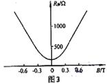 (3)试结合图1简要回答,磁感应强度B在0-0.2T和0.4-1.0T范围内磁敏电阻阻直的变化规律有何不同?