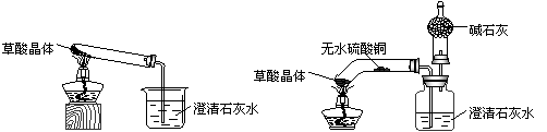 ⑴甲同学按A装置实验。在给草酸晶体加热时,先均匀加热,然后固定在试管底部加热,过一会儿观察到澄清石灰水变浑浊。