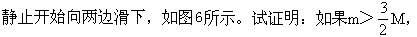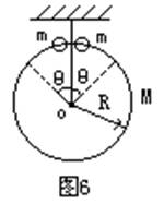 [例2]用细线把质量为M的大圆环挂起来,环上套有两个质量均为m的小环,它们可以在大环上无摩擦地滑动。若两小环同时从大环顶部由