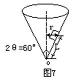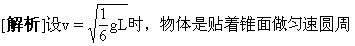 [例3]有一顶角为60°的锥形容器,在距顶点o为L=1.0m处有一质量m=1.0kg的小物体,让物体m与容器一起绕通过o点的竖直轴线作匀速转动(见图7)。(1)若ω1=5rad/s,则摩擦因数μ至少应为多大才能实现这一情况?(2)若ω2=8rad/s时,μ应为多大才能实现这一情况?