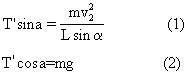 力如图15所示。此时绳与斜面已不再平行,设这时绳与水平方向的夹角为α,其运动方程为
