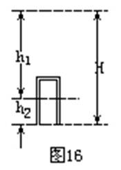 [解析]设管口压入某一深度H0时,放手后管处于平衡状态。这时管内空气的体积为V2,管内液面与管口的距离为h2,与水面的距离为h1,如图16所示。设玻璃管的体积为V3,以系统为对象,由平衡条件(忽略管内空气的重力):