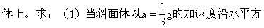 向向右作匀加速运动时,绳对球的拉力和球对斜面的压力。(2)斜面体的加速度至少多大,向哪个方向时,小球对斜面的压力为零?(3)斜面体的加速度至少为多大,向哪个方向时,绳子的张力为零?