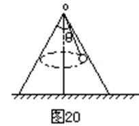 3.一个光滑的圆锥面固定在水平桌面上,轴线沿竖直方向,圆锥角θ=60°,如图20。一条长为0.2m的轻质细线,一端固定在圆锥面内的顶点o处,另一端拴着一个质量为0.1kg的物体,悬挂在圆锥面内作水平匀速圆周运动。求:(1)当物体的角速度多大时,物体和圆锥面内表