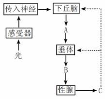 65.(7分)春天日照逐渐延长时,鸟类大多数进入繁殖季节。下图为鸟类繁殖活动的调节过程图解。请回答: