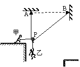特种兵过山谷的一种方法可化简为如右图所示的模型:将一根长为2d、不可伸长的细绳的两端固定在相距为d的A、B两等高处,悬绳上有小滑轮P,战士们相互配合,可沿着细绳滑到对面。开始时,战士甲拉住滑轮,质量为m的战士乙吊在滑轮上,处于静止状态,AP竖直,则此时甲对滑轮的水平拉力为_________;若甲将滑轮由静止释放,则乙在滑动中速度的最大值为_________。(不计滑轮与绳的质量,不计滑轮的大小及摩擦)