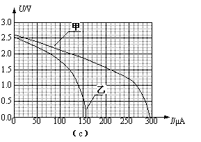 (3)实验二:减小光的强度,重复实验,得到的U-I曲线如图(c)中的乙线所示。