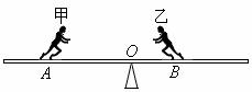 均匀长板可绕中点转动,当甲、乙两人分别站在板上A、B处时恰好能水平静止,如图所示,AO=2BO。若两人在板上同时开始做初速度为零的匀加速运动,板仍保持静止。则关于甲、乙两人的运动方向和加速度a1、a2的大小,下列说法中正确的是:(