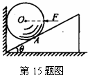 15.如图所示,楔形木块静置于水平粗糙地面上,斜面与竖直墙之间放置一表面光滑的铁球,斜面倾角为θ,球的半径为R,球与斜面接触点为A。现对铁球施加一个水平向左的力F,F的作用线通过球心O,若缓慢增大压力F,在整个装置保持静止的过程中