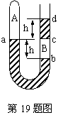 D.水银面a、b间的高度差h1′小于水银面c、d间的高度差h2′