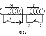 如图13所示,线圈M和线圈N绕在同一铁芯上。线圈M与电源、电键、滑动变阻器相连,P为滑动变阻器的滑动端,电键S处于闭合状态。线圈N与电阻R相连。下列说法正确的是( )。