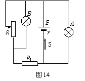 如图14所示,闭合电键S后,A灯与B灯均发光,当滑动变阻器滑动片向上滑动时,下列说法中正确的是( )。