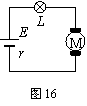 如图16所示,电源电动势E为8V,内电阻r为0.5Ω,“3V,3W”的灯泡L与直流电动机M串联接在电源上,灯泡刚好正常发光,直流电动机恰好正常工作,直流电动机的线圈电阻R0为1.5Ω。通过直流电动机的电流为_________A,直流电动机的效率为_________。