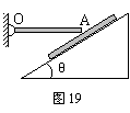 如图19所示,在倾角q 为37°的固定光滑斜面上放着一块质量不计的薄板,水平放置的棒OA,A端搁在薄板上,O端装有水平转轴,将薄板沿斜面向上和向下匀速拉动时所需拉力大小之比为3:4,则棒对板的压力大小之比为__________,棒和板间的动摩擦因数为_____________。(cos37º=0.8,sin37º=0.6)