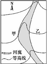下图中虚线表示纬线,曲线表示等温线,且气温甲>乙,回答5-6题。